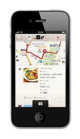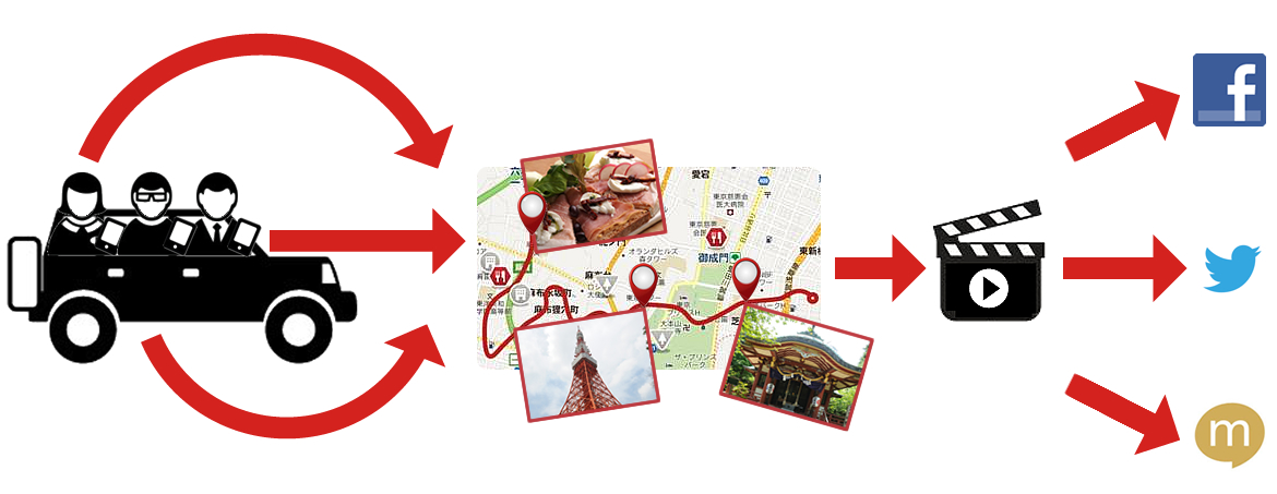 全員が撮影した、立ち寄った場所での写真・コメント・位置情報を