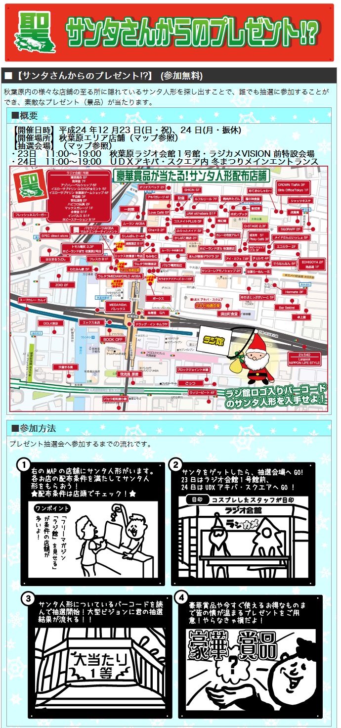 12 月23・24 日の2 日間、秋葉原内の様々な店舗の至る所に隠れている
