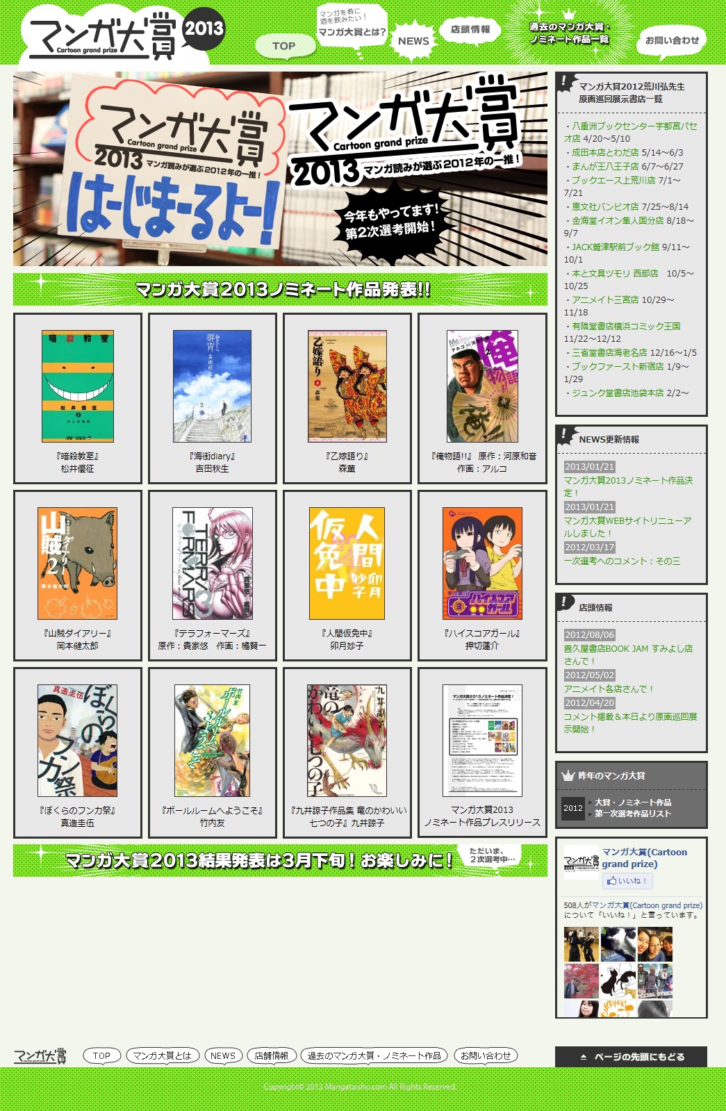 3月に発表される「マンガ大賞2013」のノミネート作品が