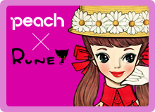 Peachの客室乗務員を模したルネ先生のキャラクターと