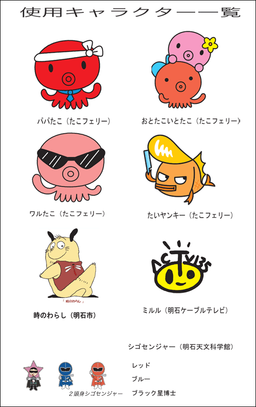 明石市の「時のわらし」や市立天文科学館の「シゴセンジャー」など