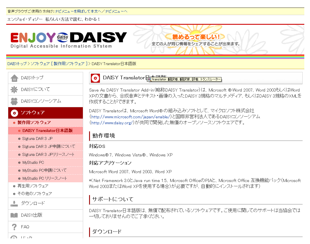アドインソフト「DAISY Translator」の日本語版を無償で提供、日本障害者リハビリテーション協会のサイトから