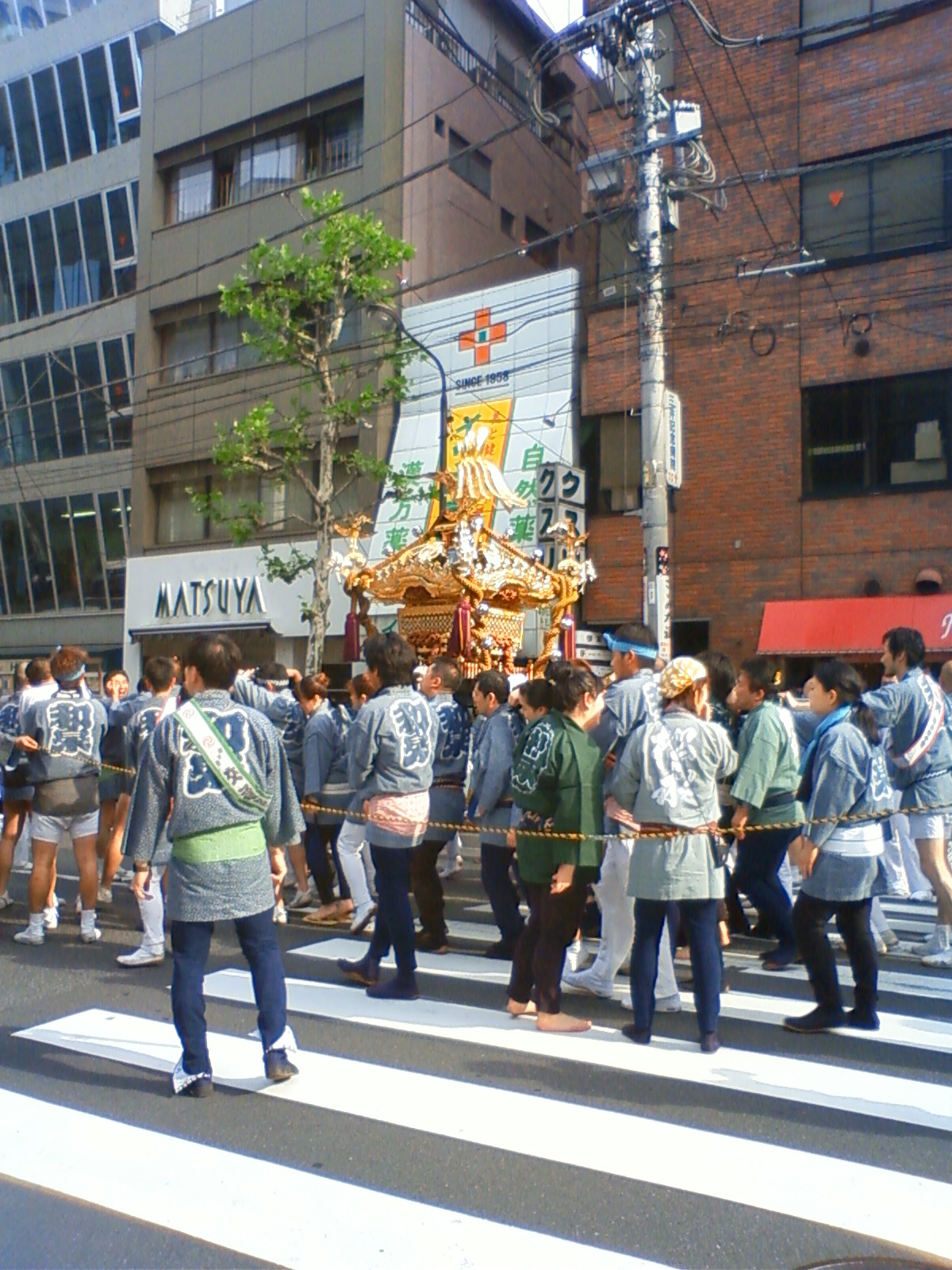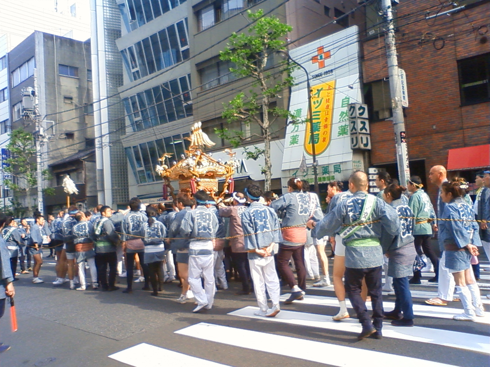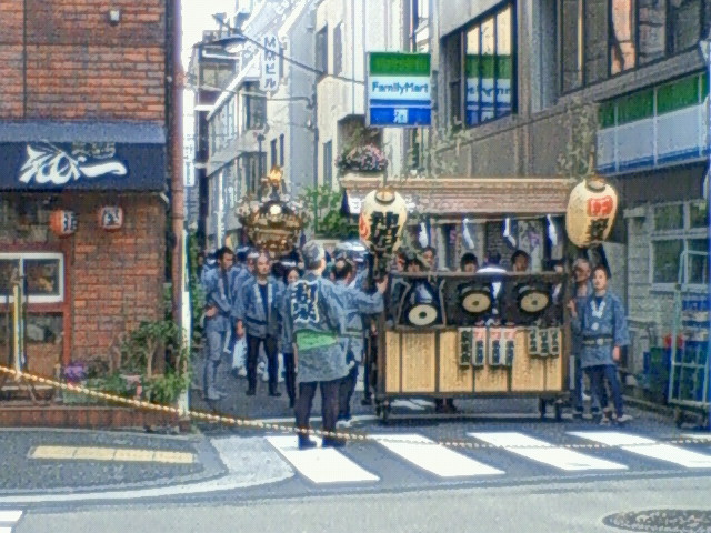 路地を進行中の御神輿を発見!