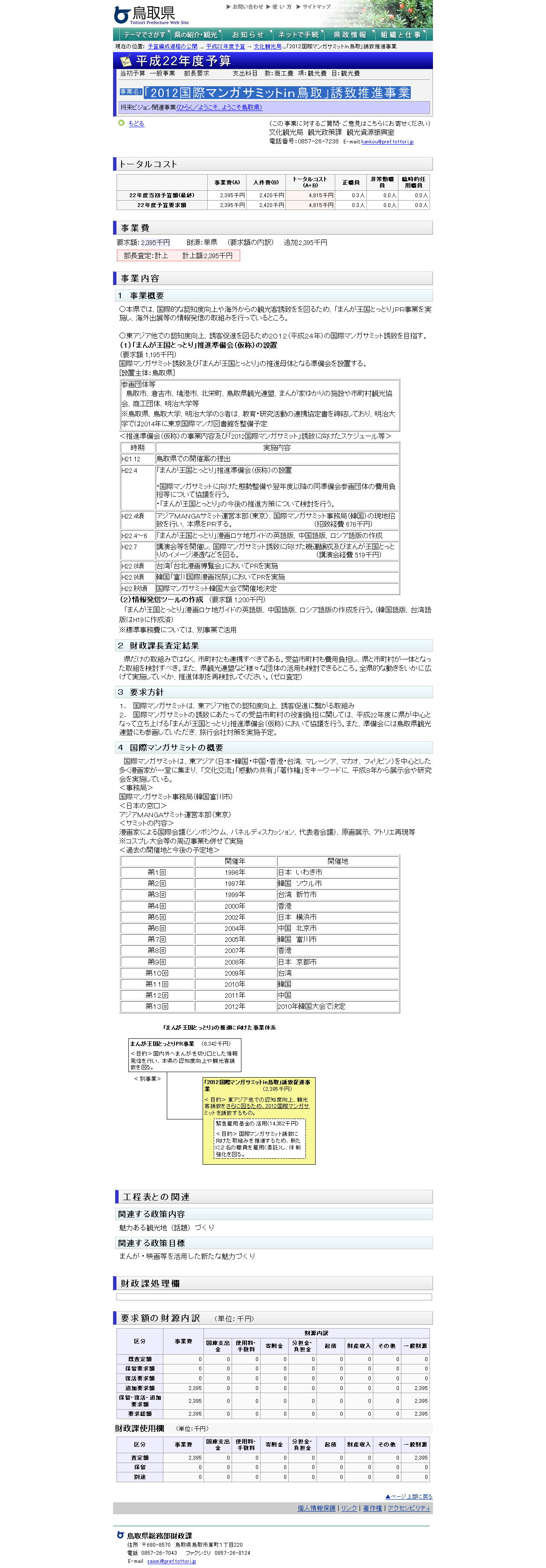 鳥取県ではNPOアジアMANGAサミットへ観光政策課の担当者さんを派遣していました。