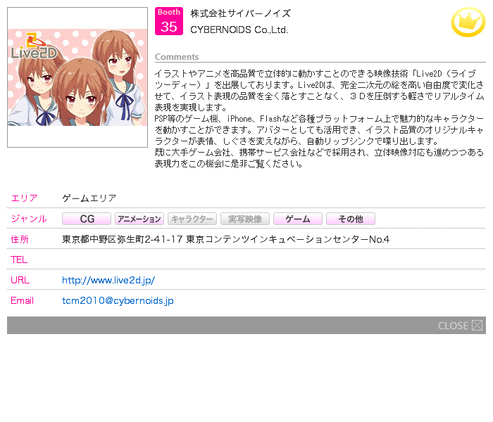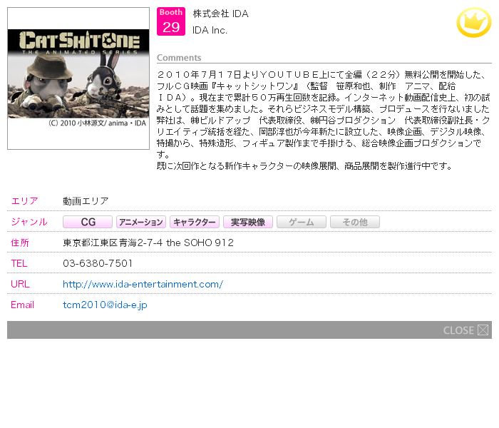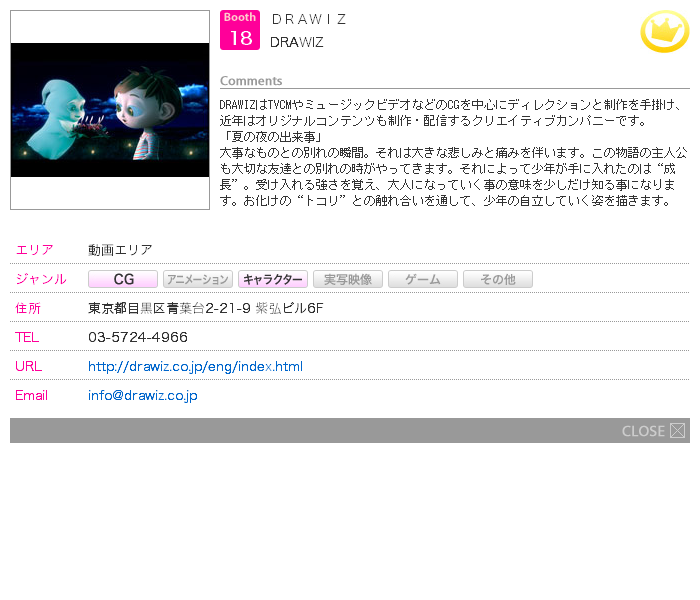 後援:韓国コンテンツ振興院、財団法人CG−ARTS協会、財団法人デジタルコンテンツ協会、
