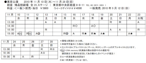 ※○25 =来場者全員に25 周年プレゼントあり 、 ◇=ウイークデイマチネ割引デー