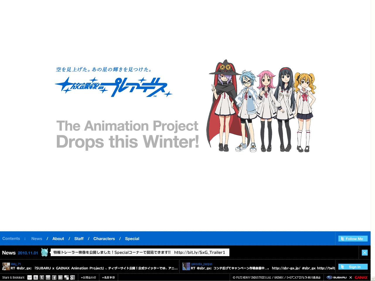 プロジェクトの公式サイトでは、アニメーション本編に関する情報や