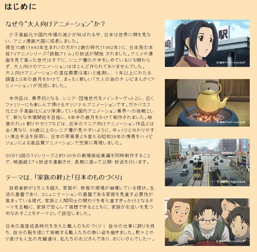 当初から、60歳以上のシニア層・団塊世代に狙いを定めて作られるアニメ作品です。