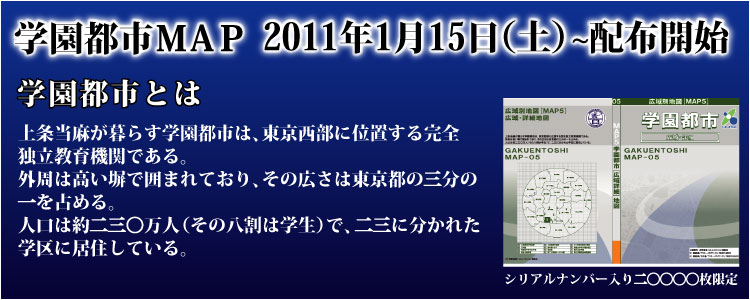 「学園都市広域詳細地図」、サイズはA5判で、両駅周辺の約35か所の位置を地図上に落としこみ