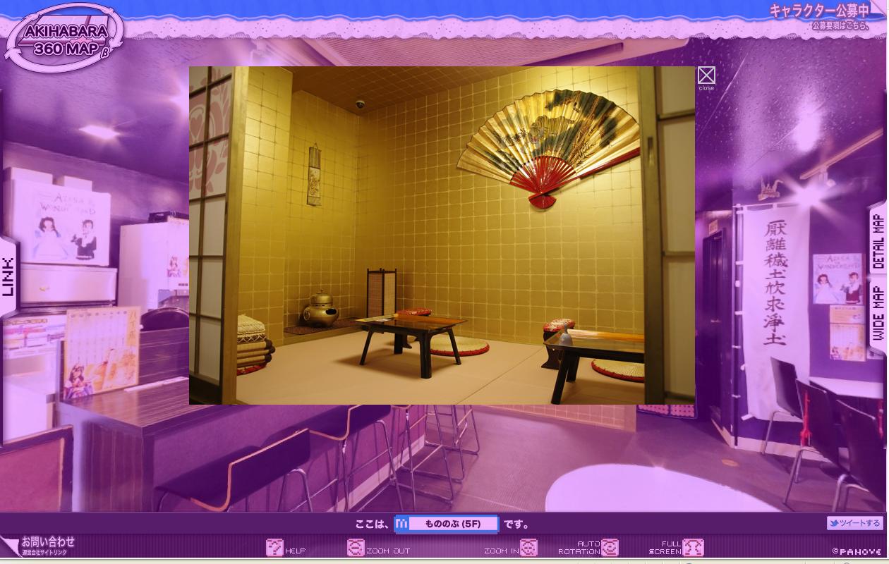 メイド喫茶など18のお店の店内を見ることができます。