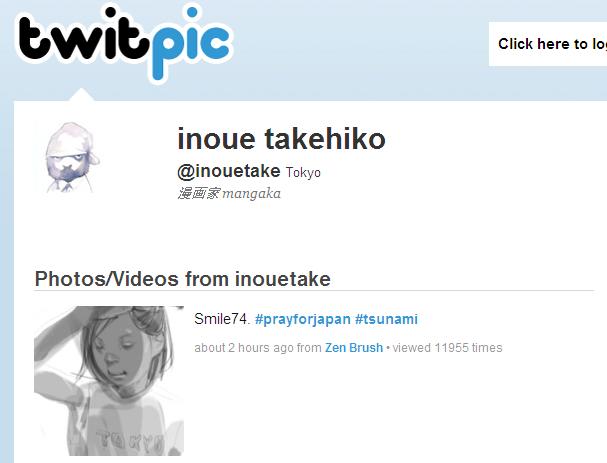 明るい笑顔を 井上雄彦先生が笑顔を描いてます http://twitpic.com/photos/inouetake 井上雄彦先生Twitter http://twitter.com/inouetake#