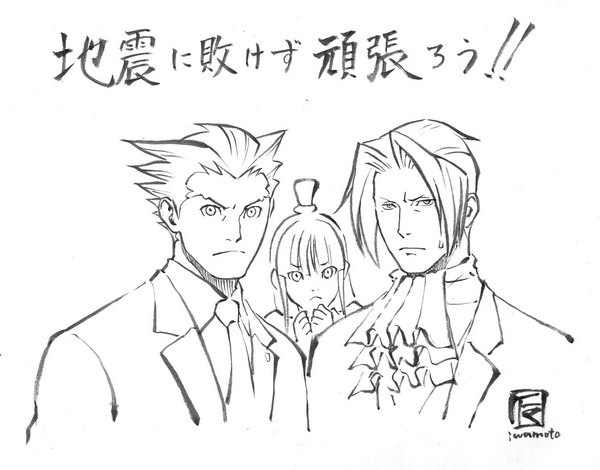 【応援メッセージ】岩元辰郎先生(逆転裁判) 【応援メッセージ】岩元辰郎先生(逆転裁判) 地震が苦手なミツルギも応援してます! #gk2 #draw_for_japan http://twitpic.com/49cpb0