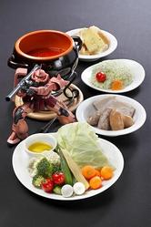ジオンフォンデュ(赤いトマトフォンデュ、温野菜、肉盛り合わせ)
