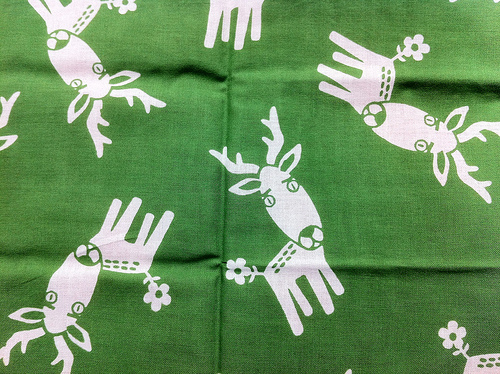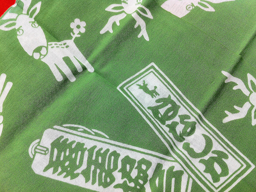 「はなしか」の姿を一面に散らしたオリジナルの手拭い。
