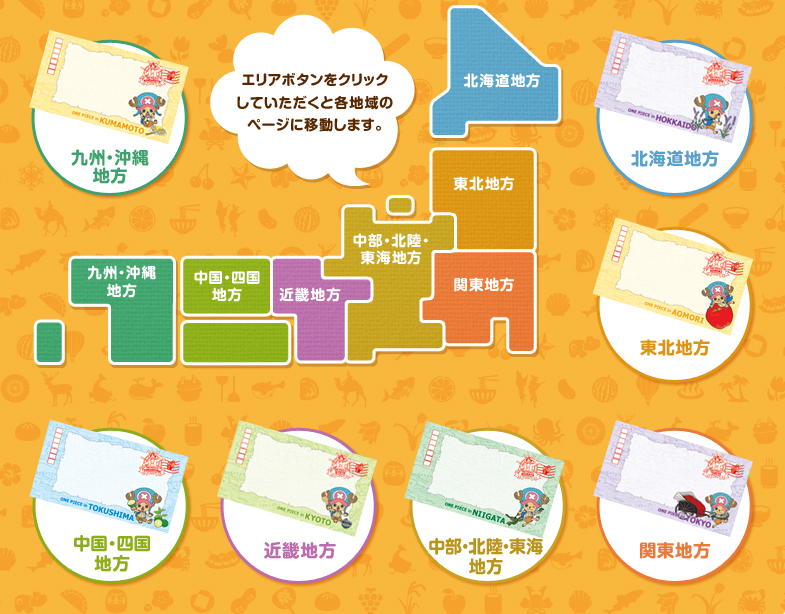 今回のデザインは、各地域の代表的な特産物や植物などをモチーフにした